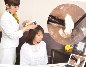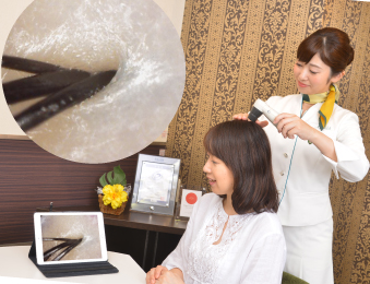 お近くのサロンの個室で、経験豊富な女性カウンセラーと一緒に、髪の相談をしながら200倍の拡大スコープで頭皮チェックやカウンセリングが受けられます